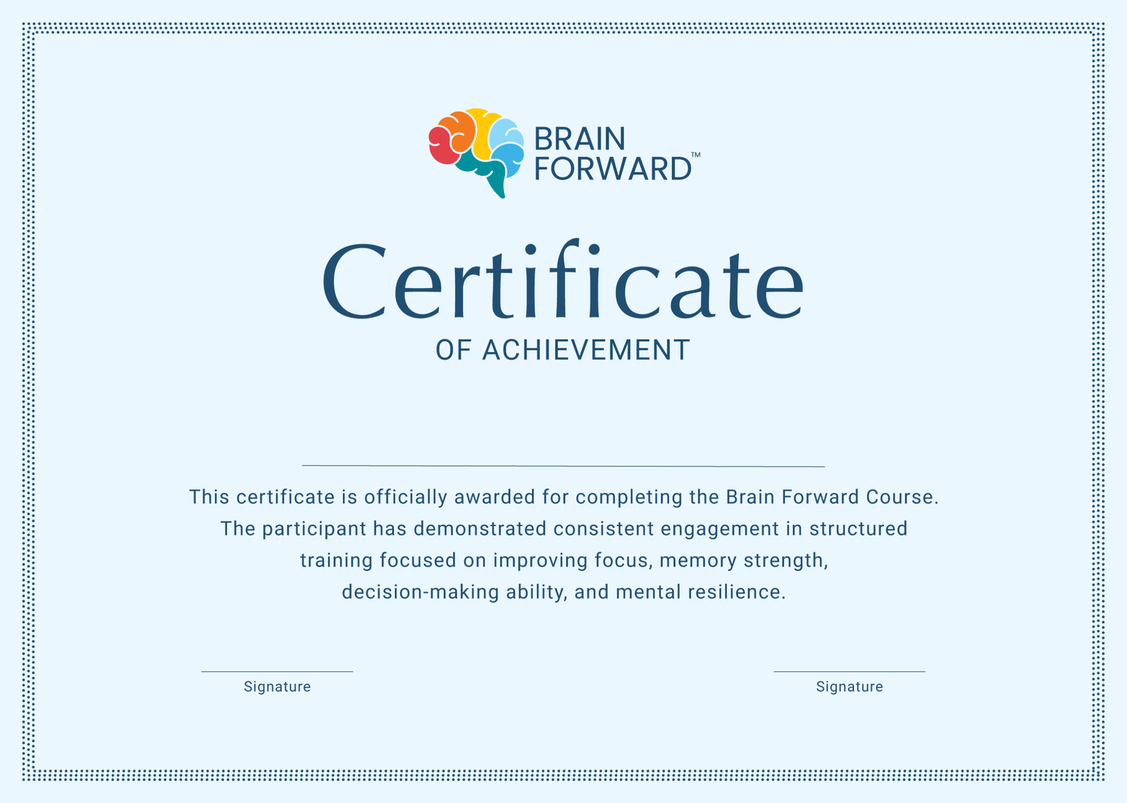 আপনার মস্তিষ্ক ও মানসিক সুস্থতা রক্ষা করে, সুন্দর জীবন ও কর্মক্ষেত্রে আপনাকে আরো আত্নবিশ্বাসী করে গড়ে তোলাই ব্রেইন ফরওয়ার্ড এর লক্ষ্য। আমাদের সেবা ও ভিন্নতা ই করে তুলেছে আমাদেরকে সেরা।